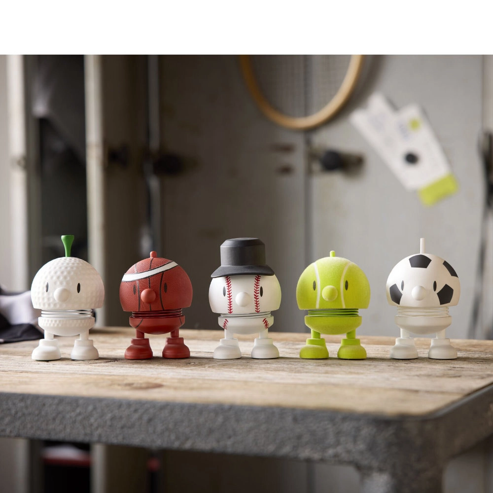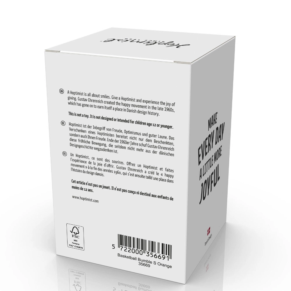 Basketball Bumble est prêt à dunker la mauvaise humeur hors du terrain. Pendant que tu dribbles à travers la vie quotidienne, il remplit ta journée d'énergie positive – sans commettre de fautes techniques. Parfait pour tout fan de basket qui aime garder le moral haut, sur et en dehors du terrain. H 7,6 cm, P 5,8 cm Fermement convaincu par le pouvoir du sourire, Gustav Ehrenreich a créé le joyeux mouvement Hoptimist à la fin des années 60. L’objectif était de concevoir une figurine qui rappellerait incessamment l’importance de rester positif et optimiste. Car, bien que les années 60 soient souvent appelées « les heureuses années 60 », cette décennie a été marquée par des événements perturbants. C’est pourquoi, la joie que répandait le design d’Ehrenreich était la bienvenue dans une période plutôt turbulente. Bimble et Bumble sont les tout premiers Hoptimists qu’a créés le designer : Une fille vêtue d’une robe avec des yeux souriants et un garçon attentif avec un bâtonnet sur la tête. Aujourd’hui, les joyeux Hoptimists font partie de l’histoire du design danois et créent de la joie dans le monde entier. Les figurines sont disponibles en quatre tailles différentes et dans une large sélection de couleurs qui répandent optimisme, bonne humeur et joie. Il existe un Hoptimist pour chaque occasion et chaque personne.