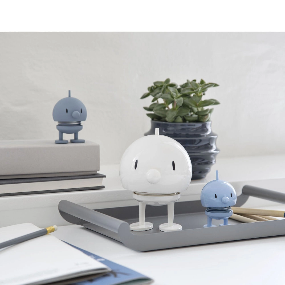 Fermement convaincu par le pouvoir du sourire, Gustav Ehrenreich a créé le joyeux mouvement Hoptimist à la fin des années 60. L’objectif était de concevoir une figurine qui rappellerait incessamment l’importance de rester positif et optimiste. Car, bien que les années 60 soient souvent appelées « les heureuses années 60 », cette décennie a été marquée par des événements perturbants. C’est pourquoi, la joie que répandait le design d’Ehrenreich était la bienvenue dans une période plutôt turbulente. Bimble et Bumble sont les tout premiers Hoptimists qu’a créés le designer : Une fille vêtue d’une robe avec des yeux souriants et un garçon attentif avec un bâtonnet sur la tête. Aujourd’hui, les joyeux Hoptimists font partie de l’histoire du design danois et créent de la joie dans le monde entier. Les figurines sont disponibles en quatre tailles différentes et dans une large sélection de couleurs qui répandent optimisme, bonne humeur et joie. Il existe un Hoptimist pour chaque occasion et chaque personne.