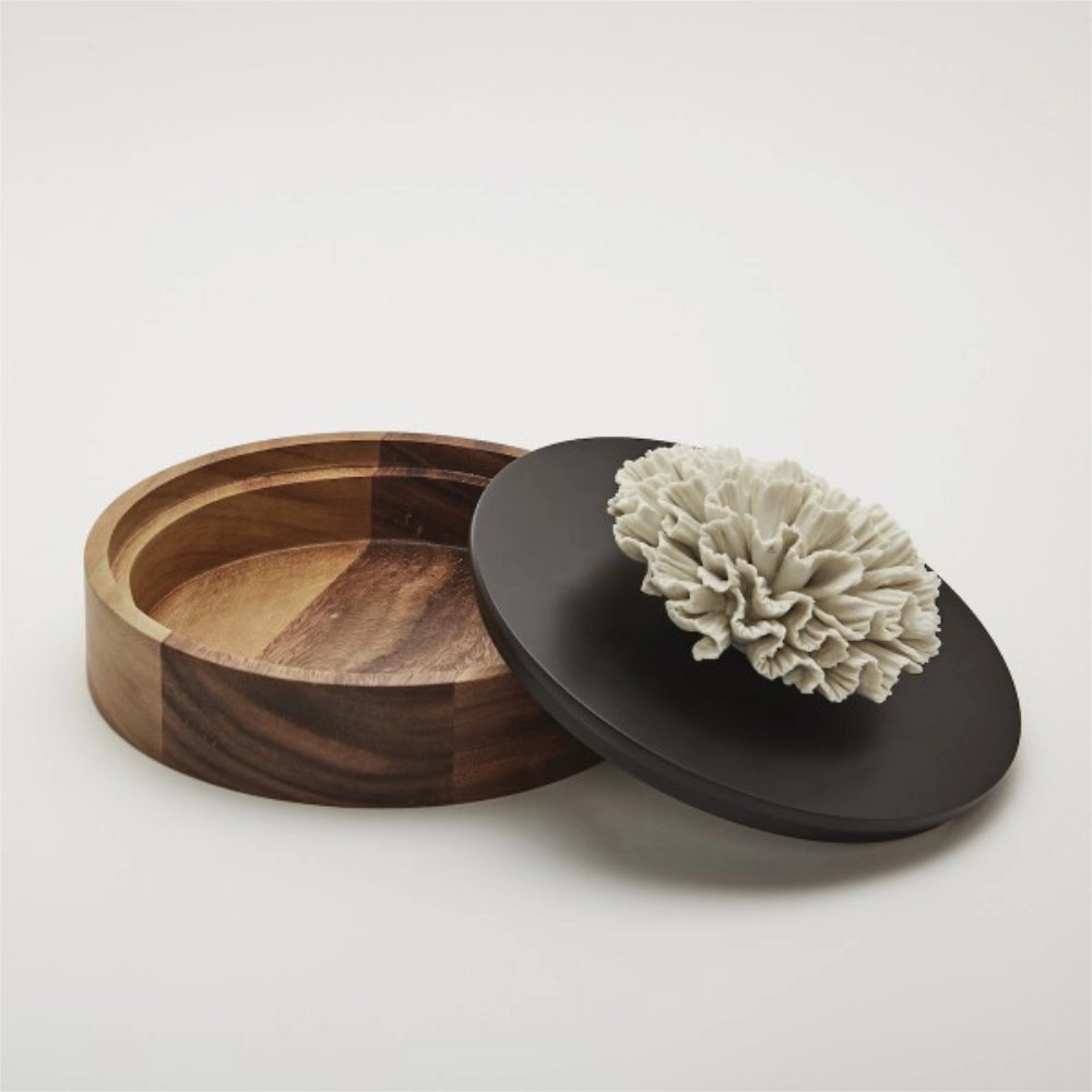 Chan XL, Boîte decorative en bois ornée d'une fleur en céramique