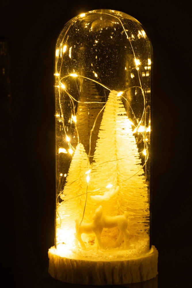 Cloche Haute Led Cerfs Verre/Resine Blanc Large