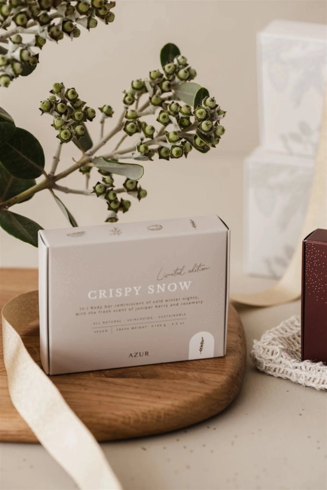 Ce magnifique coffret cadeau Winter Collection est un incontournable pour les fêtes de fin d'année dans votre boutique ! Rempli de deux savons exclusifs en édition limitée—Winter Glow (avec cardamome, orange et cannelle) et Crispy Snow (avec genièvre, pamplemousse et romarin)—ainsi qu'un pratique petit sac à savon, c'est le cadeau de Noël de l'année. Élégamment emballé et prêt à être vendu, ce coffret est idéal pour les clients en quête de luxe et d'originalité. Mettez cette meilleure vente en avant et offrez à vos clients une expérience unique et festive !