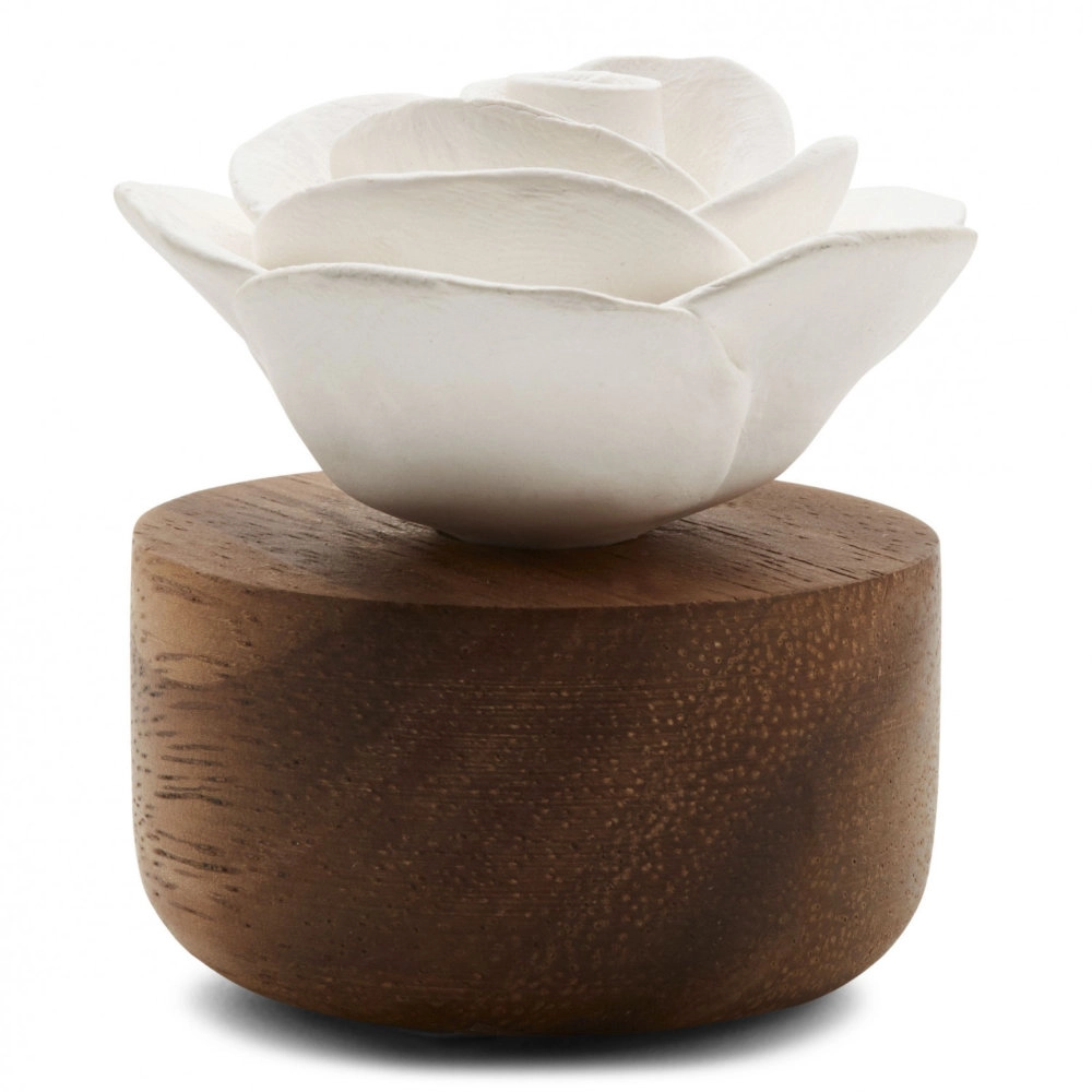 Diffuseur de parfum en bois et céramique blanc Rose du Bengale