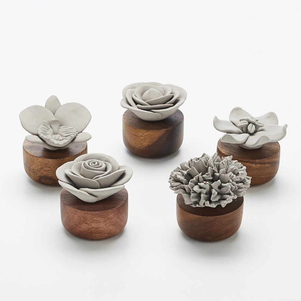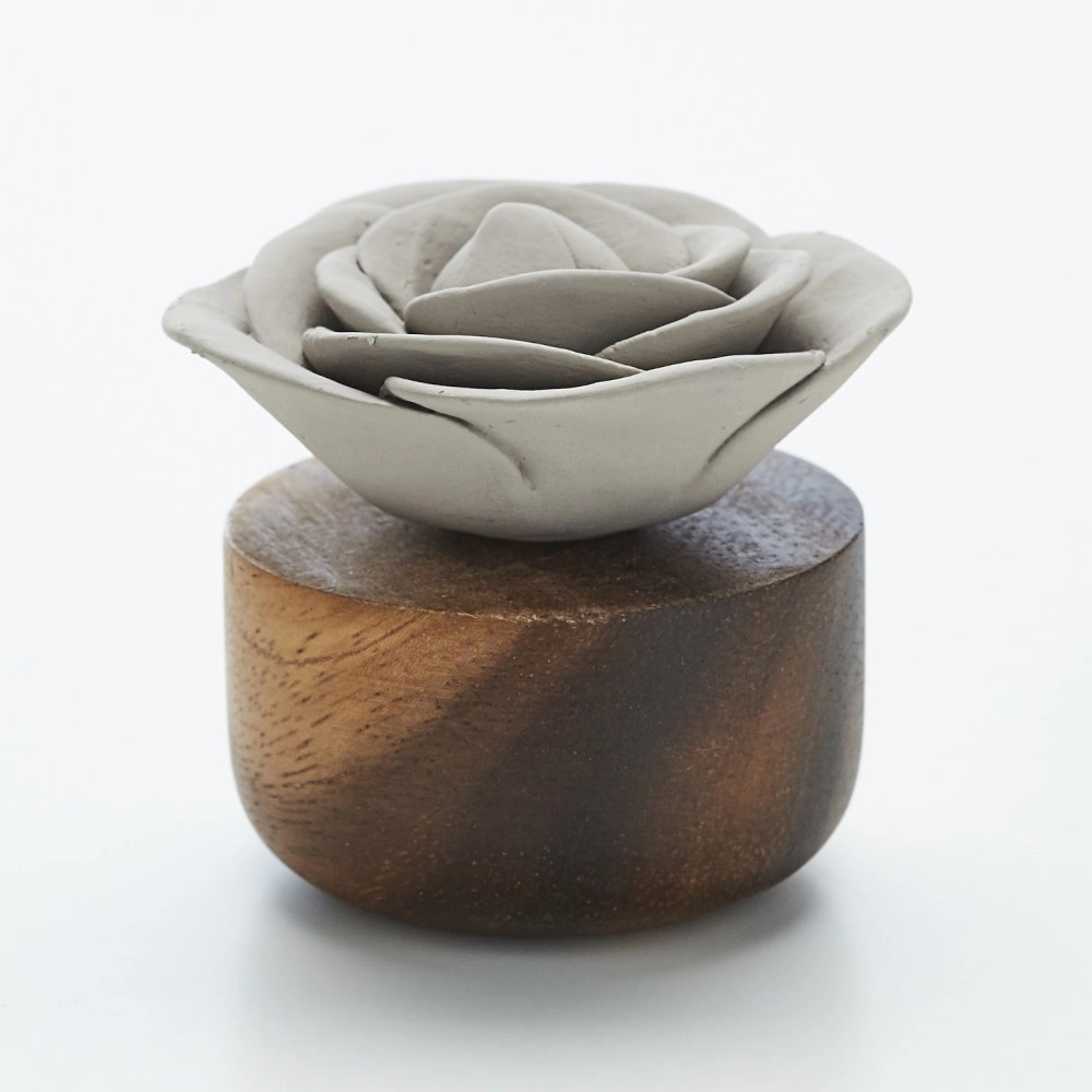 Diffuseur de parfum en bois et céramique gris Rose du Bengale