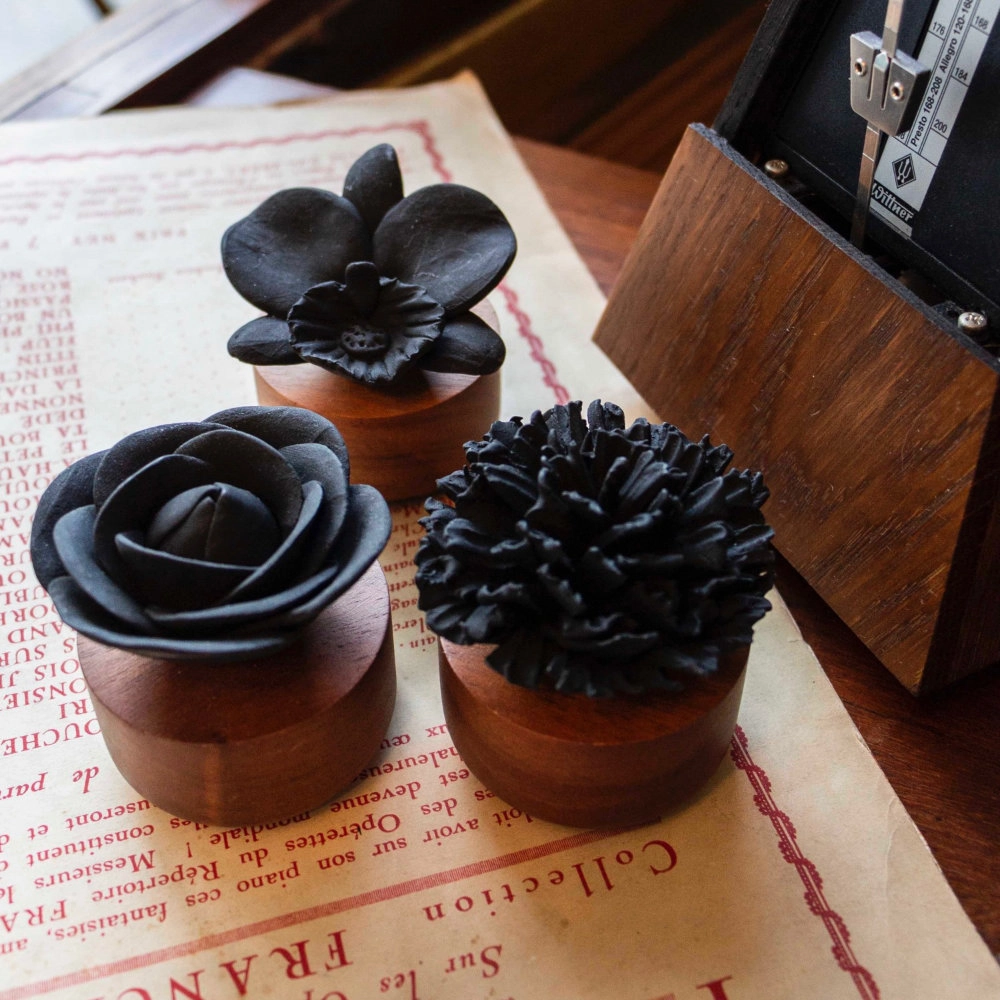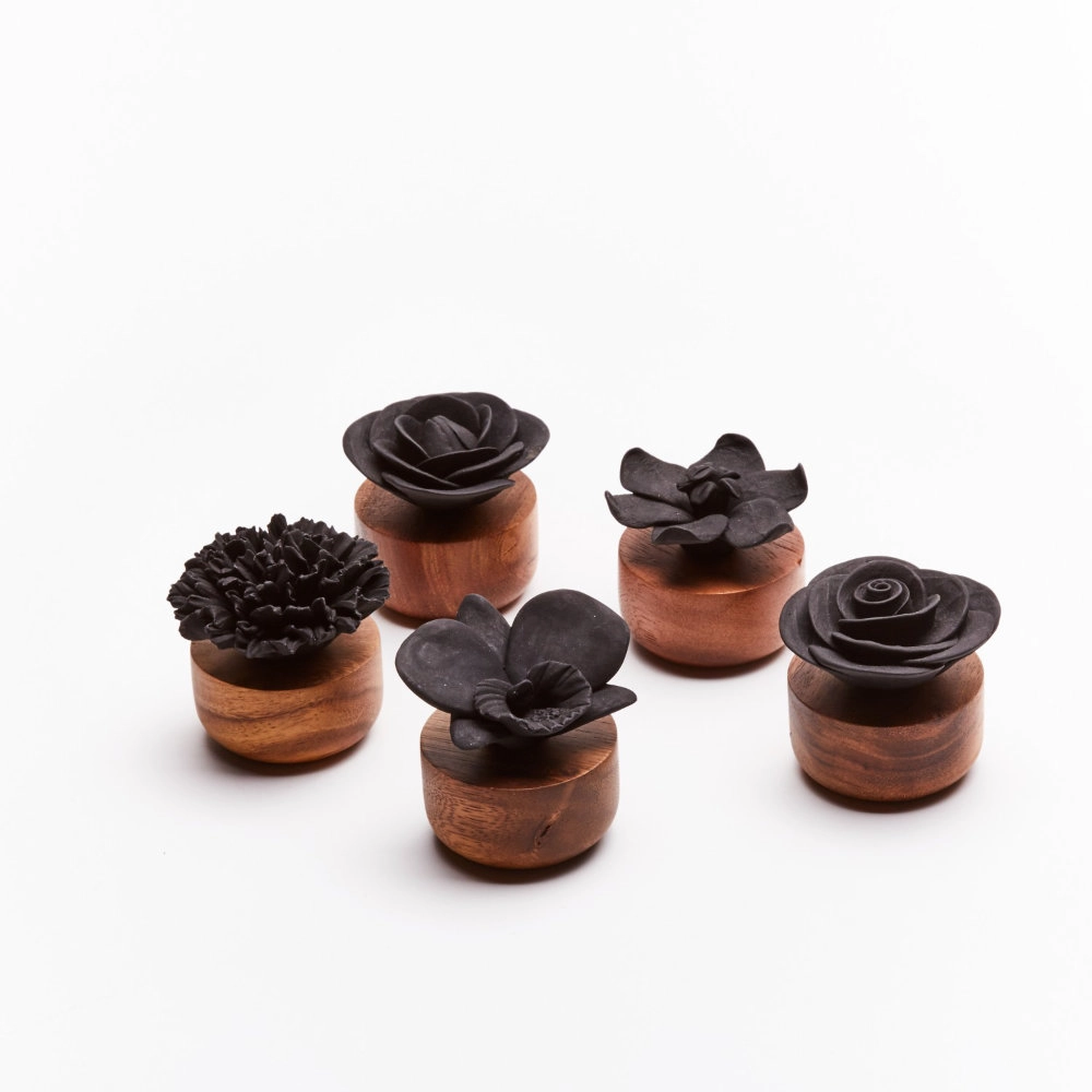 Diffuseur de parfum en bois et céramique noir Œillet du Japon
