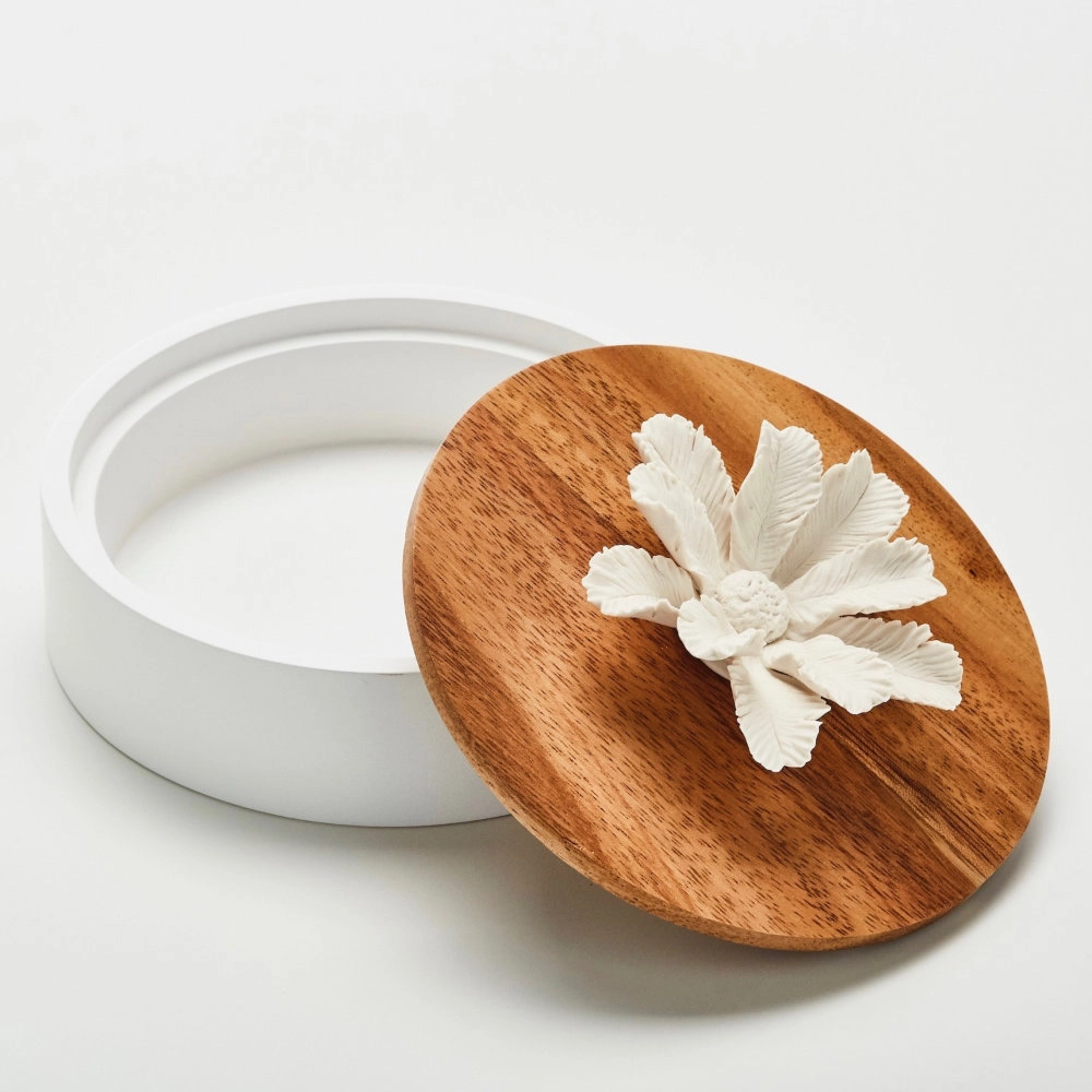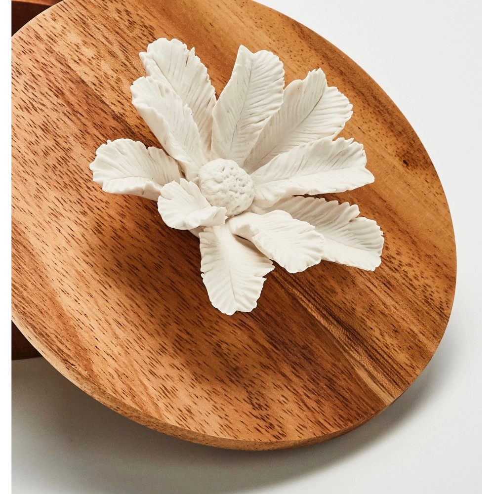 Namou | Boîte décorative en bois ornée d'une fleur en céramique