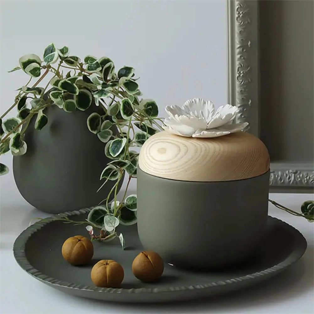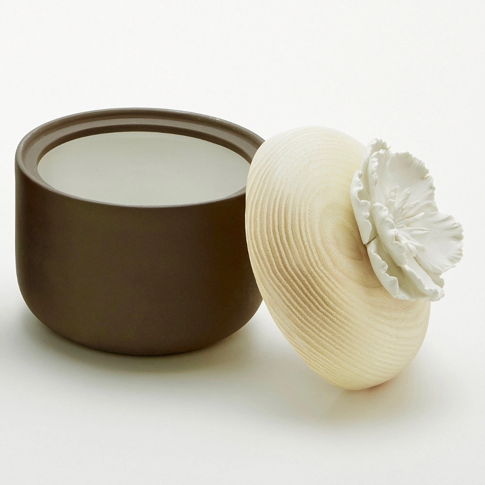 PHAO S | Boîte décorative en céramique et bois ornée d'une fleur en porcelaine