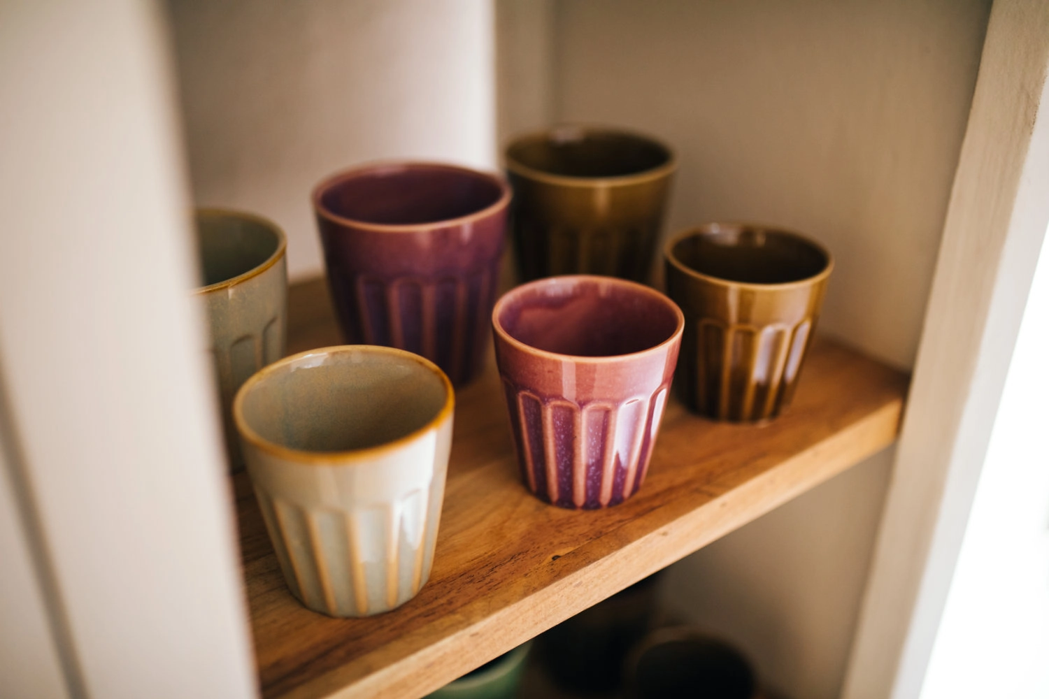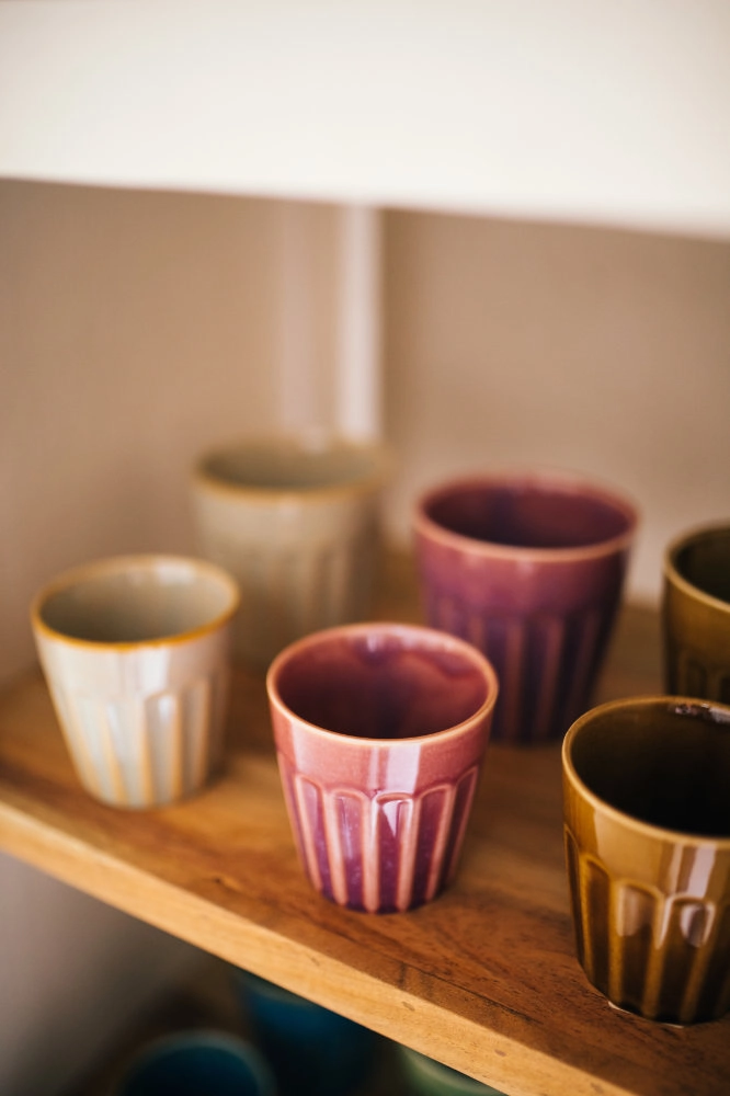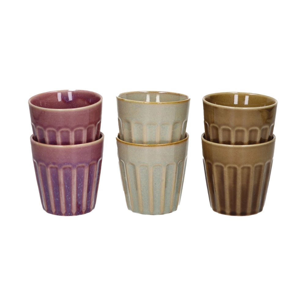 Envie de savourer un instant de convivialité autour d'un café? Découvrez notre collection de gobelets Rialto. Ces petits verres à café en porcelaine sont recouverts d'un émail réactif qui leur confère de jolies nuances de couleurs. Empilables, ils sont disponibles en deux tailles et deux ensembles de six aux couleurs coordonnées : vert-bleu-brun, et beige-lilas-caramel.