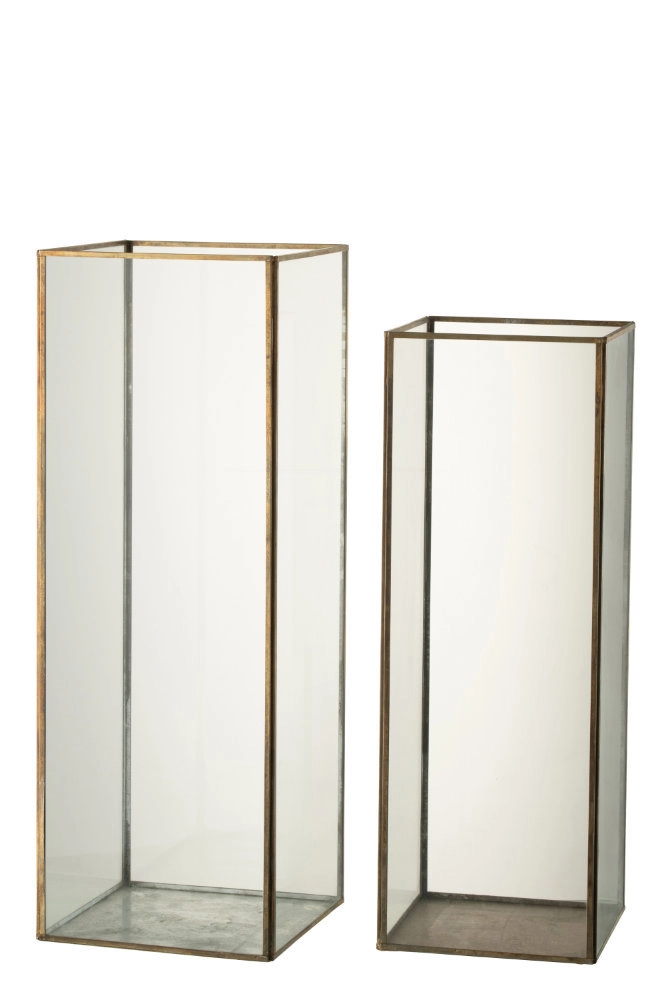 Set De Deux Photophore Rectangle Verre/Metal Bronze