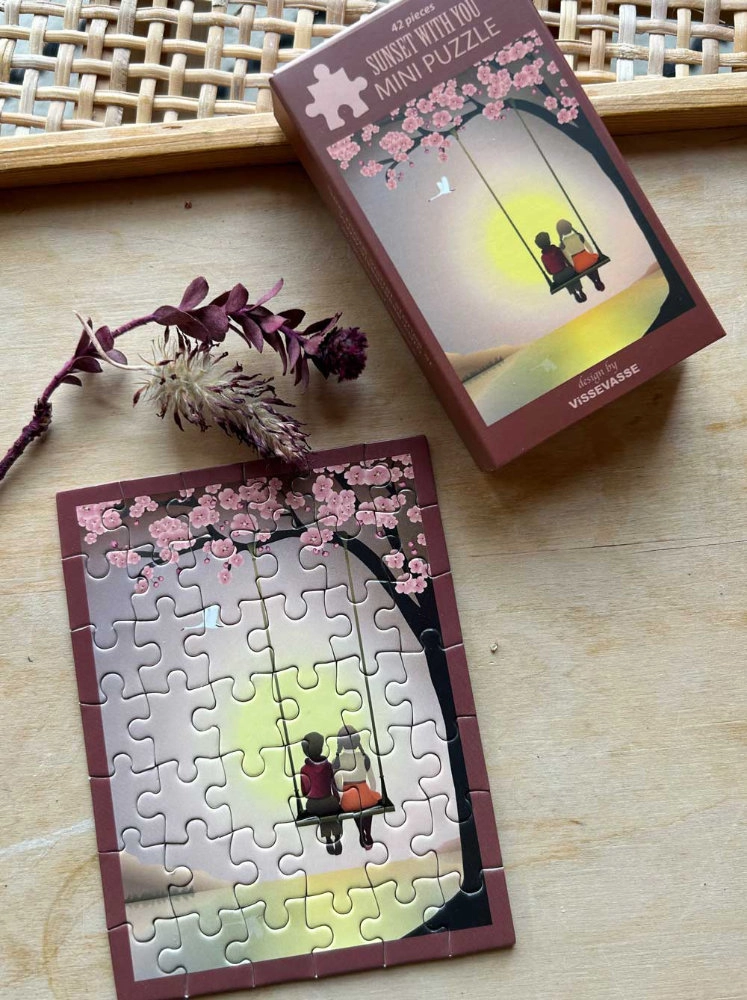 Ce mini-puzzle est présenté dans une petite boîte pratique, facile à emporter pour une réunion ou un trajet en train, si tu as besoin d'un moment de pause pour te détendre et te concentrer sur une activité créative. Un puzzle est l'activité déconnectée parfaite.