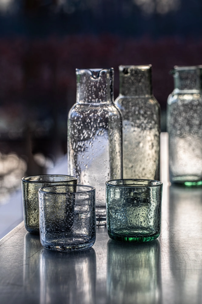 Envie de pétiller votre fin d’année ? Après Victor, Vitto, Vicky... voici notre toute dernière collection en verre bullé : Vico. Soufflé à la bouche, le verre présente de fines bulles qui réflechissent la lumière d’une manière unique. Disponible en 3 coloris, les pichets et gobelets Vico feront ainsi scintiller la moindre de vos boissons, jusqu’au simple verre d’eau plate. Une touche d’énergie au quotidien.